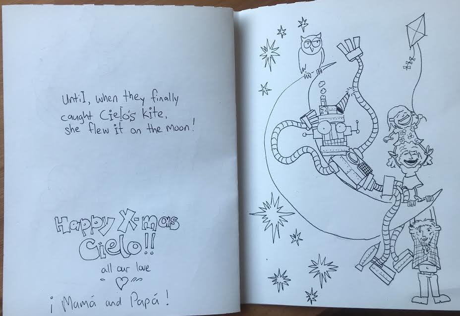 Hi all. Cielo, Elena and I are living on the road as I type. Chasing work across Australia. Following, is Cielo’s Christmas card. Lately, she has been obsessed with an imaginary robot called Nothing. I hope you all have a wonderful holiday season!